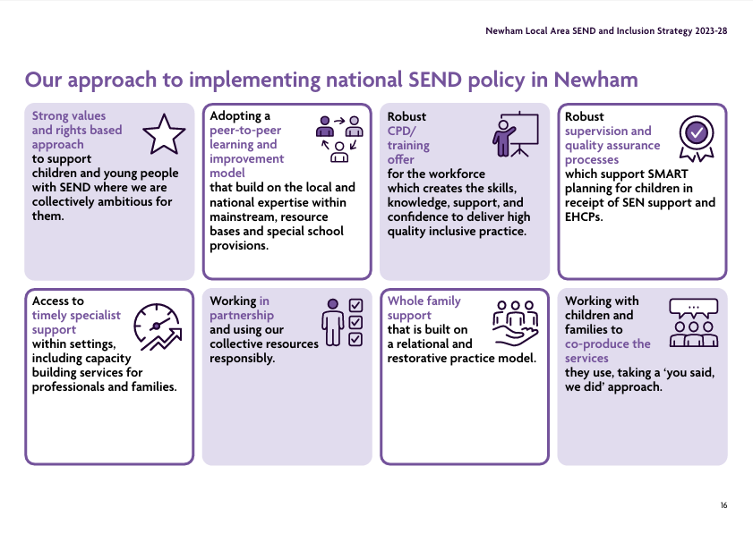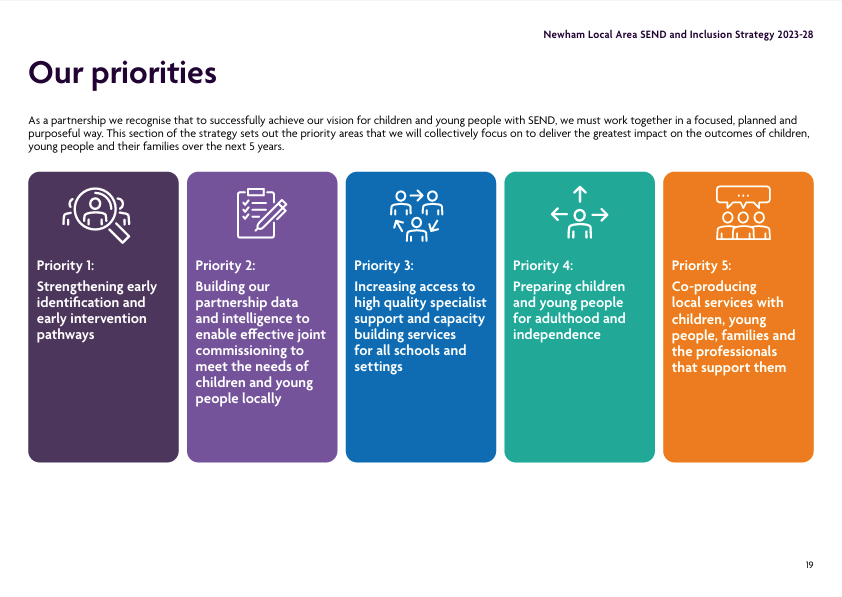As of 1 September 2025, changes to the Early Years Foundation Stage (EYFS) have come into effect. I wanted to read Newham’s SEND and Inclusion Strategy 2023–28 to see how the council plans to work with schools and families to improve outcomes for disadvantaged children.